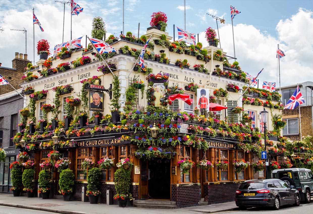 London’s Hanging Gardens are still very much alive and well. The Churchill Arms, Notting Hill Gate is an incredible botanical feast and stunning ‘explosion’ of hanging baskets. Built in 1750 it is a true slice of famed British eccentricity.